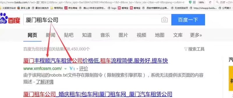 搜索詞:廈門租車公司 占據(jù)首頁!